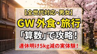 ゴールデンウィーク(GW)**の食べ過ぎで後悔したくない方必見!以前は連休明けに5kg太っていた僕が、22kg痩せた今実践する「算数ダイエット」攻略法を公開。家族や友人との外食を楽しみつつ、男女問わず誰でもスマートに乗り切る具体的なテクニックと、旅行先での調整術を伝授します。