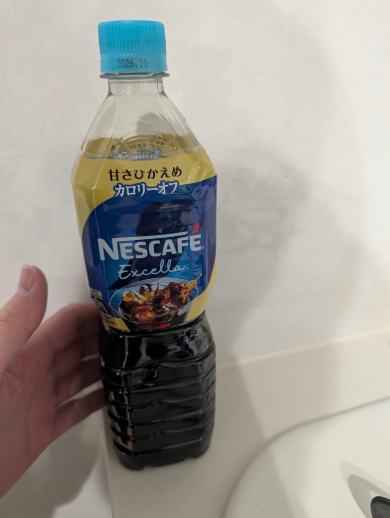 飲んでいるのは「ネスカフェ ボトルコーヒー 甘さ控えめ」です。